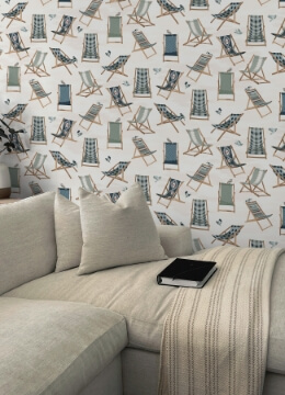 A sunny pick for carefree, beach-day style, Chairs brings laid-back charm through relaxed deck chair illustrations and soft coastal hues. This cheerful pattern adds an easygoing, vacation-like feel to guest rooms, rentals, or bright nooks. Just Lounging Green Peel and Stick Wallpaper comes on one roll that measures 20.5 inches wide by 18 feet long.