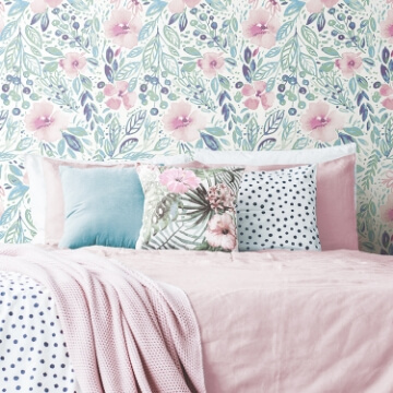 Painterly watercolor flowers bloom in a variety of pink and yellow tones with lush greenery. It's now easier than ever to enjoy the beauty of a country meadow in your space! Installing this lovely pattern is as simple as Peel, Stick...Done!®