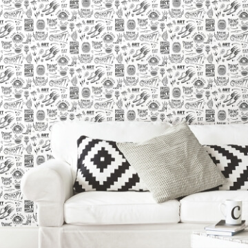 The collage of motifs brings life to the savvy young fashion designer's talent for vital, movement oriented art in inky black on bright white; a classic color combination that makes whole room coordination easy from the walls to the accent pieces in the room. RoomMates peel and stick wallpapers are an easy and affordable way to decorate. Peel off the paper backing and smooth onto the wall, no additional adhesive required. When it's time to redecorate, simply remove them effortlessly in full strips with no remaining sticky residue or damage to walls.