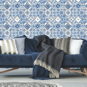 Mediterranean Tile Peel and Stick Wallpaper - Blue
