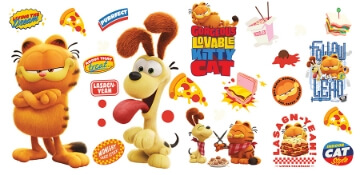 Featuring Garfield, Odie, and an array of the duo's favorite things, these renter-friendly peel and stick wall decals make decorating your space with the mischievous spirit of The Garfield Movie as easy as Peel, Stick...Done!® Â The Garfield Movie Wall Decals contains 31 pieces on 4 sheets that each measures 9-in x 17.975-in.