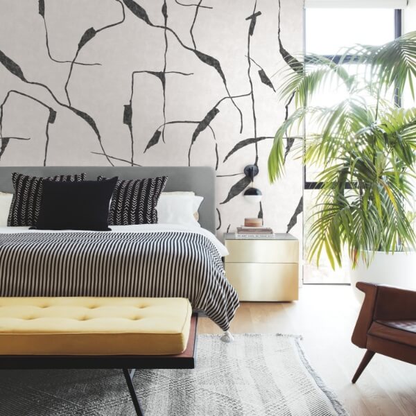 The Ivory Coast mural by Nikki Chu for RoomMates is the quintessential wall motif for simply stated sophistication.