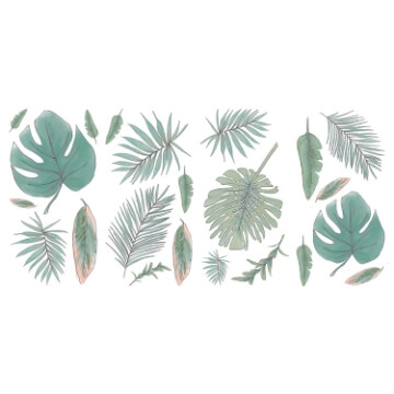 The Mr. Kate Hand-Drawn Palm wall decals feature lacey palm fronds with lively Monstera leaves. Style on the wall, below your steps, in a corner of your living room, around a headboard, or above your desk. Bring a little Mr. Kate to your room by simply peeling off the backing and sticking the decal on a flat surface. These decals are printed on a reusable adhesive that leaves no damage or residue behind and can be applied somewhere else without a problem! Renter-friendly and easy to change up whenever new inspiration strikes!