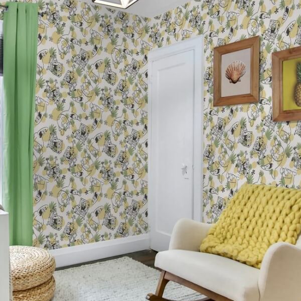 Brighten up your walls with this vibrant SpongeBob SquarePants Pineapple Peel and Stick Wallpaper! Inspired by SpongeBob’s iconic pineapple home, this bold geometric print serves up sunny style and unmistakable Bikini Bottom charm. SpongeBob SquarePants Pineapple Yellow Peel and Stick Wallpaper comes on one roll that measures 20.5 inches wide by 18 feet long.