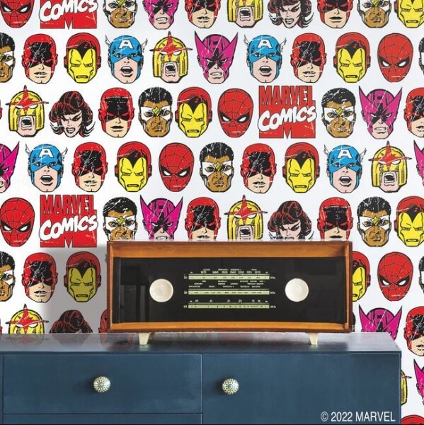 Transform your space with the legendary Super Heroes of the Marvel Universe! This peel and stick wallpaper features iconic comic book covers and scenes, celebrating beloved characters like Spider-Man, Iron Man, Captain America, Black Panther, Black Widow, the Hulk and Thor! Perfect for fans of all ages, this dynamic wallpaper adds a bold, retro touch to bedrooms, game rooms, and home offices in just Peel, Stick…Done!® Marvel Classic Comics Red Peel and Stick Wallpaper comes on one roll that measures 20.5 inches wide by 18 feet long.