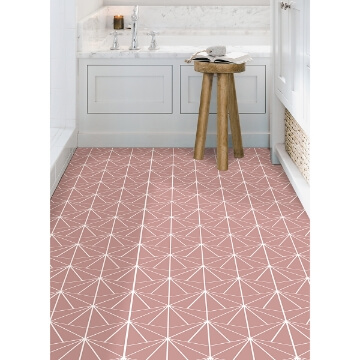 Redefine ordinary spaces in your home with these Art Deco-inspired peel and stick floor tiles. Its blush hue and intricate geometric design has the perfect mid-century modern vibe. Quartz Peel and Stick Floor Tiles contains 10 pieces on 10 sheets that measure 12 x 12 inches. This product measures 60-in x 24-in x .06-in when assembled.
