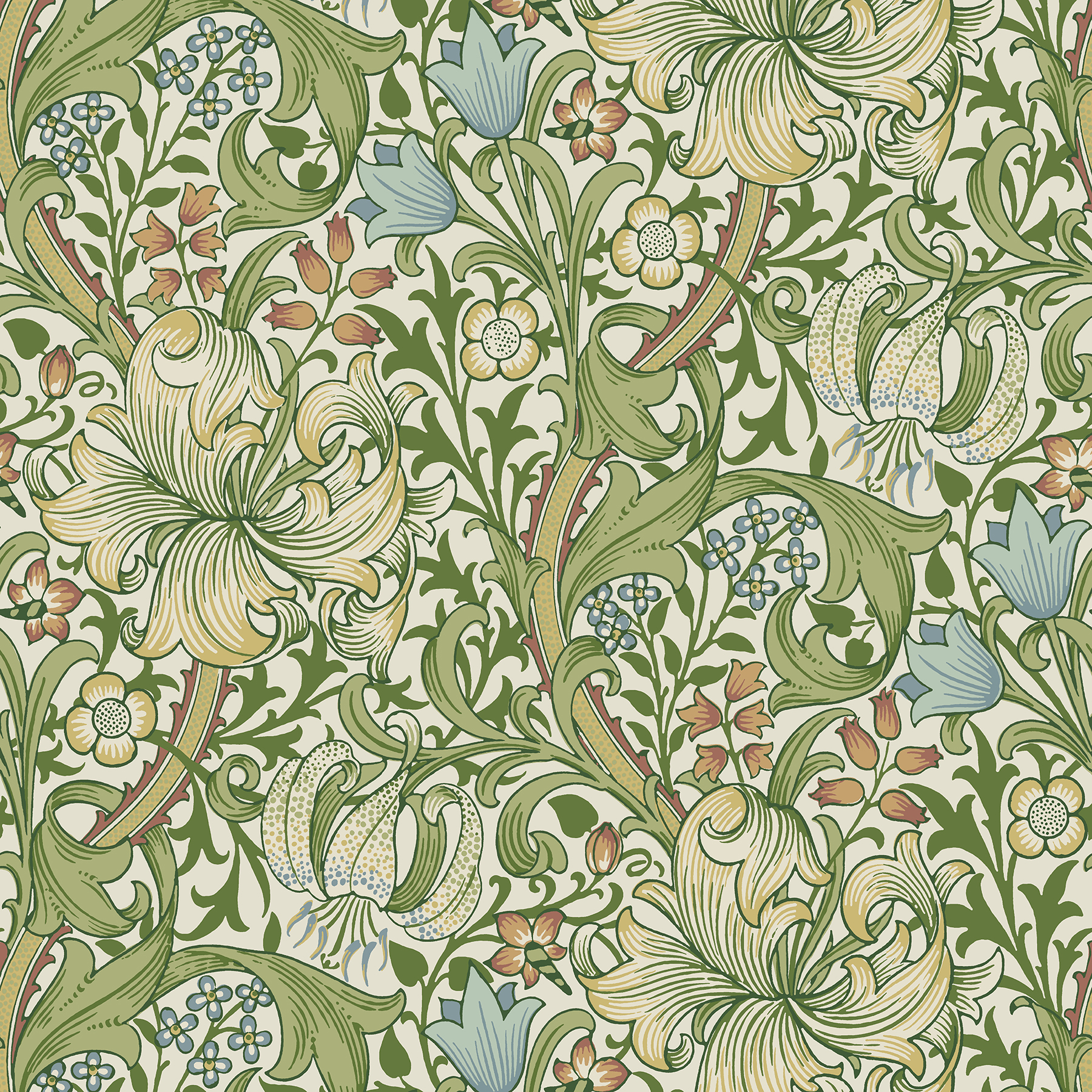 Golden lily Boughs Green Peel and Stick Wallpaper