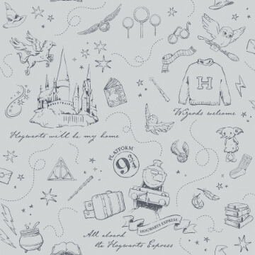 Spellbinding and sweet as can be, this officially-licensed Harry Potter™ peel and stick wallpaper brings the magic of Hogwarts to any space with ease. This pattern features memorable icons from the Harry Potter universe, like Hogwarts jumpers, the Sorting Hat, and more, over a soft grey backdrop. No spells required for installation; just Peel, Stick…Done!® Harry Potter Magical Moments Trail Grey Peel and Stick Wallpaper comes on one roll that measures 20.5 inches wide by 18 feet long.