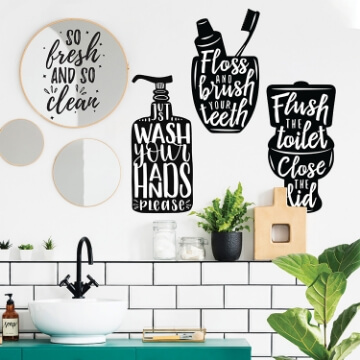 Our Wash Your Hands Soap quotes peel and stick wall decals will remind anyone that uses your bathroom to wash their hands before they leave. Perfect for a kids' bathroom or restroom in a common area, the simple design will match any decor. Our high-quality vinyl allows you to easily swap your bathroom wall decals out for something new in a matter or minutes.