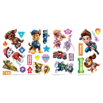 Bring Paw Patrol rescue adventure home with Marshall, Rubble, Chase, Skye, Rocky, Zuma, and friends to easily decorate the walls of their favorite room with this set of Paw Patrol Movie peel and stick wall decals from RoomMates.