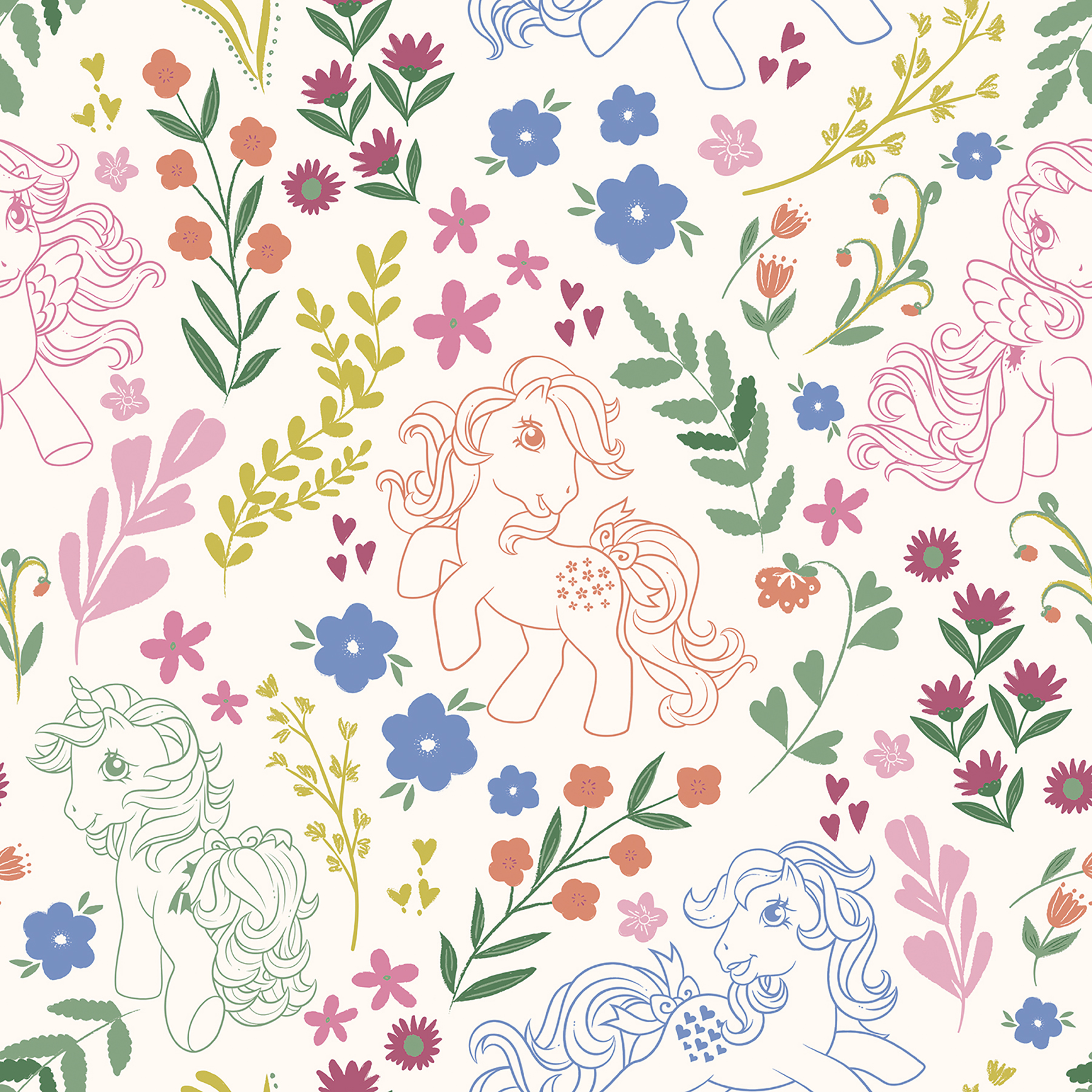 My Little Pony Retro Floral Cream Peel and Stick Wallpaper