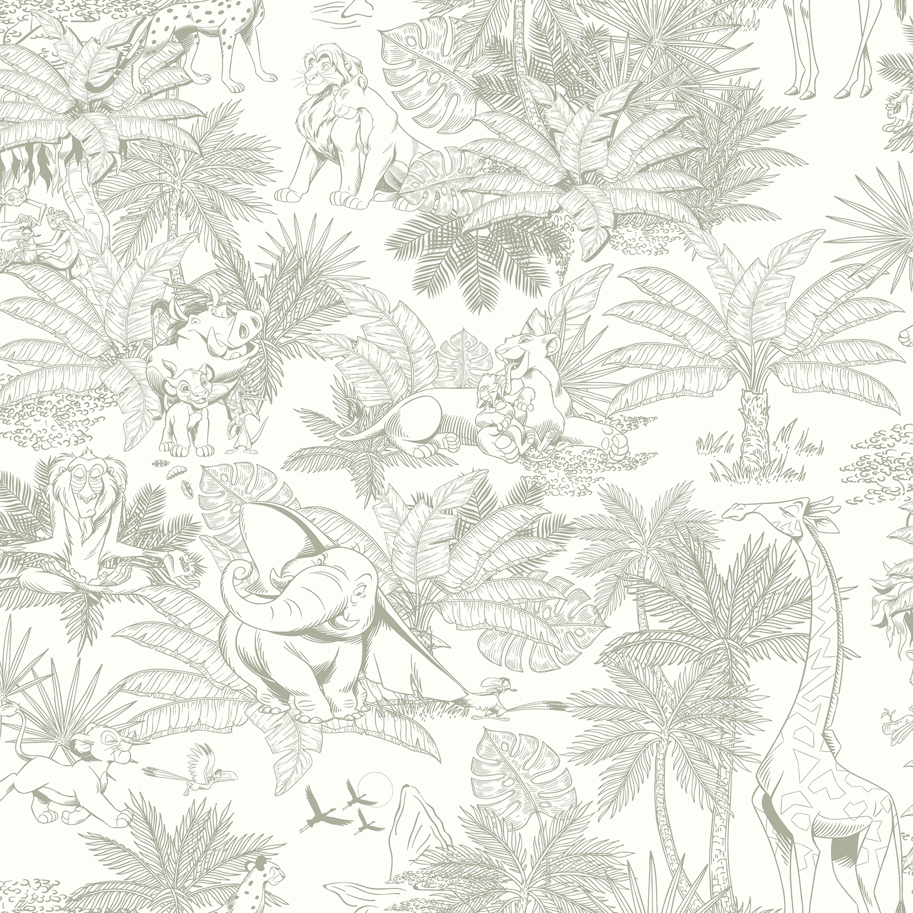 Disney Lion King Tropical Toile Sage Peel and Stick Wallpaper
