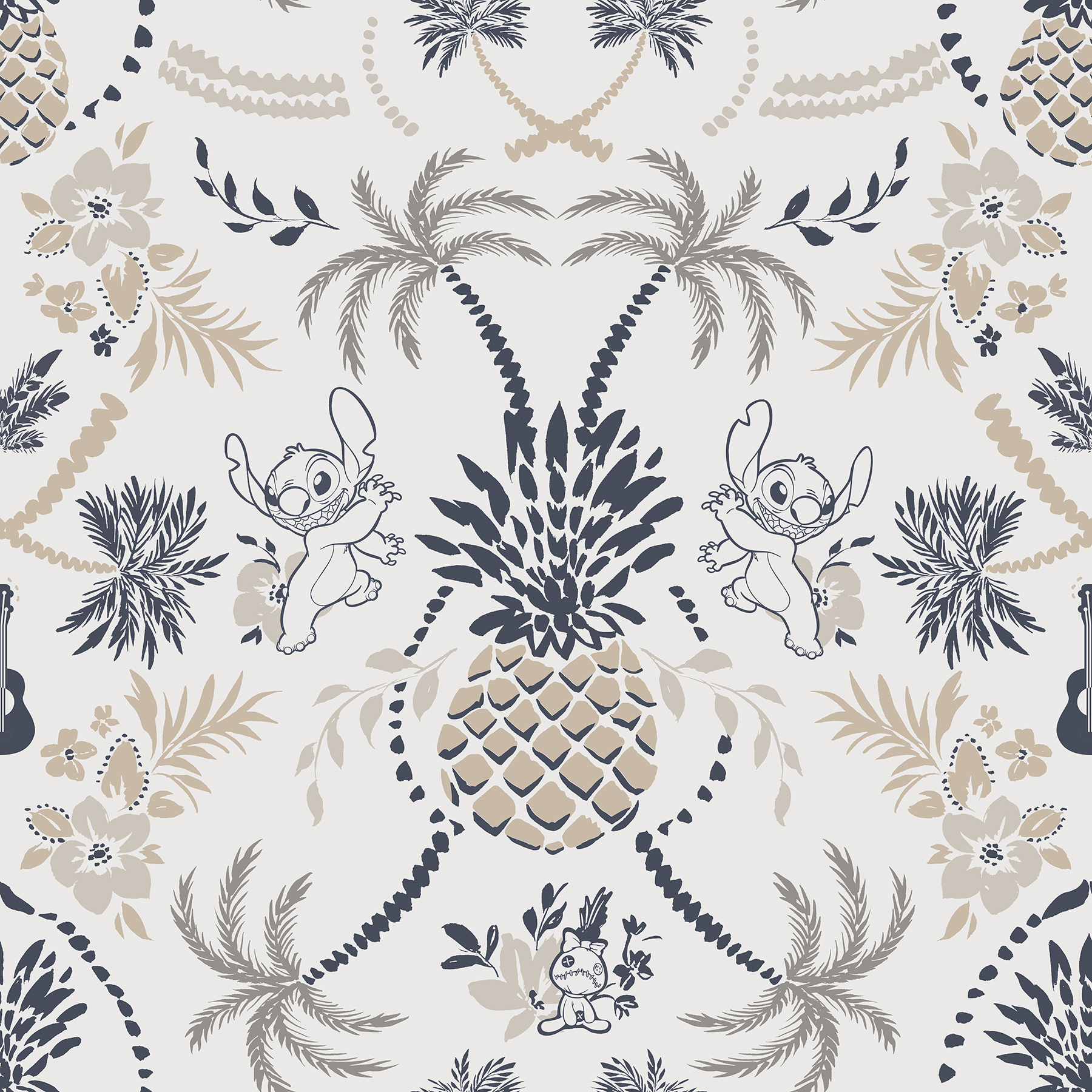 You could earn 25 reward points this purchase. Sign up. A playful take on classic damask, this pattern pairs tropical pineapples with subtle Stitch accents for a fresh island feel. The rhythmic layout and soft color pairings make it an uplifting design with plenty of personality. Disney Stitch Pineapple Damask Taupe and Blue Peel and Stick Wallpaper comes on one roll that measures 20.5 inches wide by 18 feet long.
