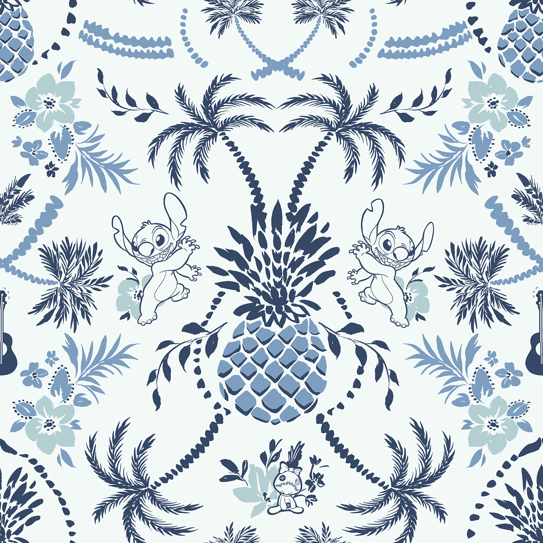 Disney Stitch Pineapple Damask Blue Peel and Stick Wallpaper