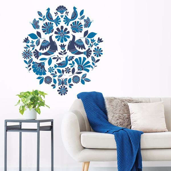Delight in the classic, botanical beauty of this Chinoiserie print. This peel and stick wallpaper features elegant birds perched upon trailing floral vines in a traditional indigo and white color palette. Chinoiserie Garden Indigo Peel and Stick Wallpaper comes on one roll that measures 20.5 inches wide by 18 feet long.