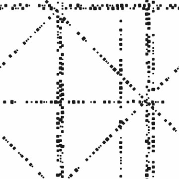 Graphic pixel dots in intriguingly irregular lines form a soft diamond and windowpane motif in Crisscross peel and stick wallpaper by Jane Dixon for RoomMates.