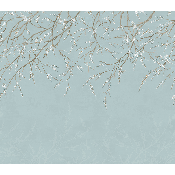 Create a tranquil atmosphere with this self adhesive wallpaper mural from Scott Living. Budding cherry blossoms in white and soft pink bloom across the top of a blue-toned background, with delicate white branches extending below for a balanced, serene look that can be used alone or in multiples. Hanami Blue Peel and Stick Mural contains 6 pieces on 6 sheets that measure 108 x 20.5 inches.