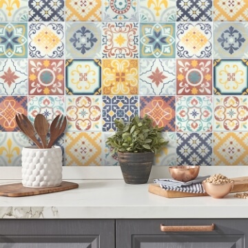 Give your kitchen or bathroom an instant update with beautiful Earth tones and traditional designs. Created to emulate an artist's meticulous brush strokes, Spanish Terracotta peel and stick tiles are the fastest and easiest tiles you'll ever install.